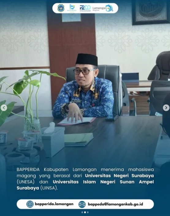 Selamat bergabung dan selamat belajar. Semoga kegiatan magang ini dapat memberikan manfaat serta kontribusi positif, baik bagi mahasiswa maupun bagi BAPPERIDA Kabupaten Lamongan.