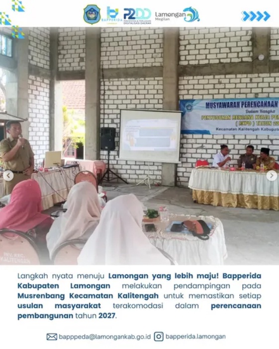 Langkah nyata menuju Lamongan yang lebih maju! Bapperida Kabupaten Lamongan melakukan pendampingan pada Musrenbang _ Kecamatan Kalitengah untuk memastikan setiap usulan masyarakat terakomodasi dalam perencanaan pembangunan tahun 2027.