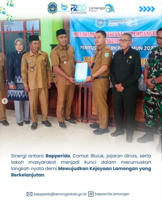 Sinergi antara Bapperida, Camat Bluluk, jajaran dinas, anggota DPRD, serta tokoh masyarakat menjadi kunci dalam merumuskan langkah nyata demi Mewujudkan Kejayaan Lamongan yang Berkelanjutan.