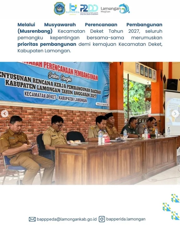 Melalui kolaborasi seluruh pihak, kita optimis pembangunan di Kecamatan Deket semakin terarah, berkelanjutan, dan berdampak nyata bagi kesejahteraan warga.