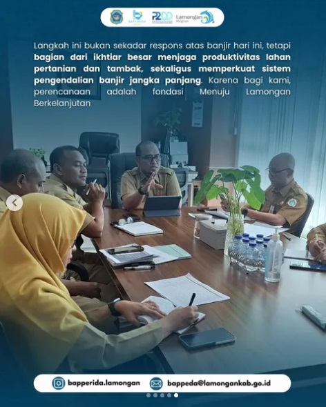 Langkah ini bukan sekadar respons atas banjir hari ini, tetapi bagian dari ikhtiar besar menjaga produktivitas lahan pertanian dan tambak, sekaligus memperkuat sistem pengendalian banjir jangka panjang. Karena bagi kami, perencanaan adalah fondasi Menuju Lamongan Berkelanjutan