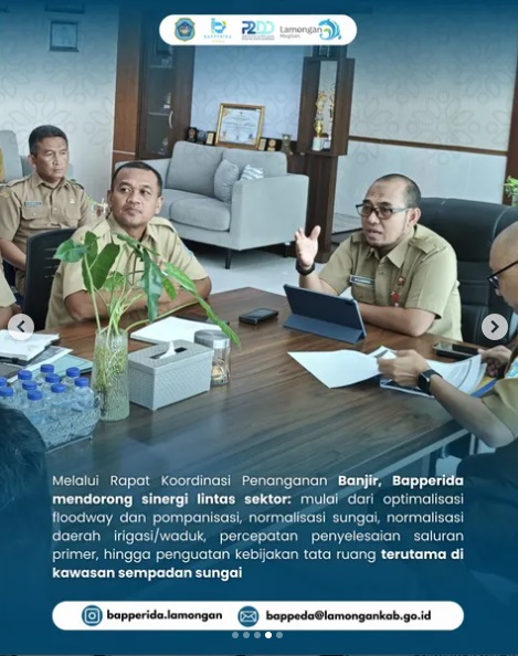 Melalui Rapat Koordinasi Penanganan Banjir, Bapperida mendorong sinergi lintas sektor: mulai dari optimalisasi floodway dan pompanisasi, normalisasi sungai, percepatan penyelesaian saluran primer, hingga penguatan kebijakan tata ruang terutama di kawasan sempadan sungai.